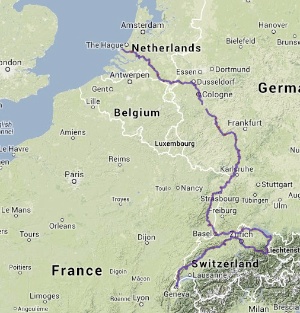 The initial route will follow EuroVelo 15 - a way-marked route from Rotterdam, Netherlands to Andermatt Switzerland. We may follow the Swiss Rhone Route (Route 1) from Andermatt to Geneva - but this will depend upon fitness, time and how the children enjoy the prolonged experience of cyclotouring. Only time will tell!