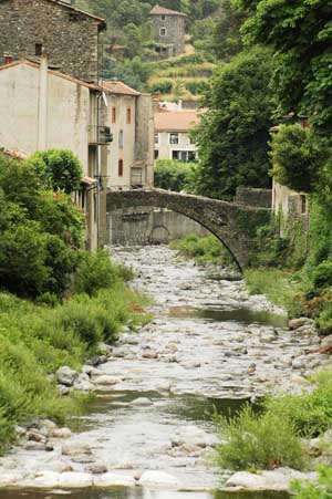 From Uzes we headed towards the mountains of Les Cevennes. The sun had turned itself up to full stregth as we sweatily wound through the trilogy - the essetials of agriculture in South East France - Swaying wheat fields, regimental vineyards and the gnarly old olive groves. It was picture book stuff. As we climbed into Les Cevennes we were just amazed to see the fantastic choice of small roads in the area. We used a Michelin 1:200,000 road atlas of France. this was absolutely perfect for traversing France. It shows 99% of roads it has spot heights, shows steep gradients,has campsites and points of interest. Virtually every road is worth cycling in this area (avoid La Corniche - too much traffic), and each one takes you through old stone villages and has great views. Allow plenty of time to explore and make the most of the fascinating area.