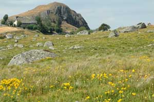 The real highlights of the Massif Central were the ascent of Puy Mary in the Cantal and the granite landscape of the Aubrac plateau. The Cantal is known for its striking volcanic landscape. Deep, lush, green vallies towering up to typical volcanic cones. Once again the roads provide plenty of options for quiet cycle touring. The climb up to Puy Mary is well worth the effort, providing a 360 degree panorama of the surrounding peaks. The Cantal is also known for its excellent cheese. |