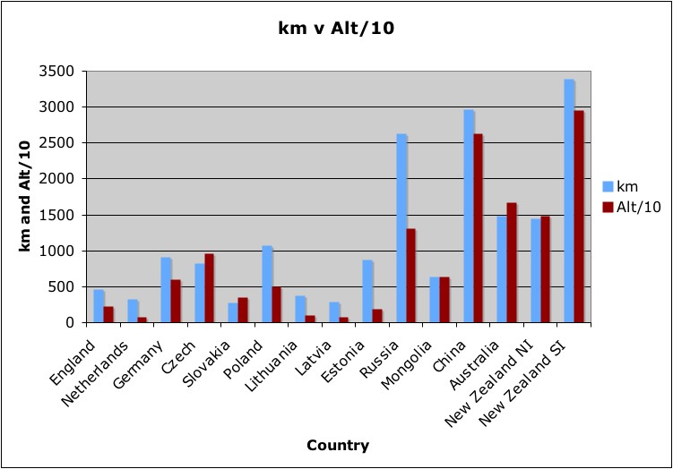 | Please find below a selection of graphs relating to the statistics of our trip from Worcester to New Zealand. If you have a request for a graph and we have the information please let us know and we shall endeavour to include it on this page.