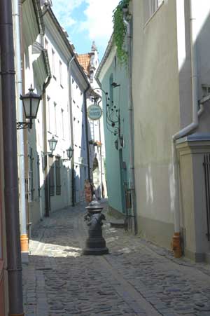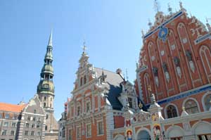 13 Juillet 2005 - Nous flânons dans Riga. La vieille ville de Riga est très belle. Elle est située sur la large rivière Dagga. Plus loin il y a beaucoup de plages et de lacs, mais nous n'avons pas eu le temps de les visiter. Que pouvons nous dire à propos de cette ville ? Un profusion d'églises, des rues anciennes belles et tranquilles. Beaucoup d'art modern-style, ainsi que des parcs agréables. Nous l'avons tous les deux beaucoup appréciée. Et franchement après le cyclisme difficile et les paysages ennuyeux des jours précédents, c'était vraiment grandiose.