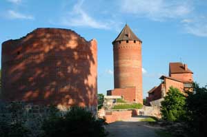 15 Juillet 2005 - de Riga à Turaida 77 Km. Nous n'imaginions vraiment pas suivre la route normale vers le nord, qui est la Via Baltica, la quelle suit la côte. Nous avions eu assez de vent, de routes droites et de voitures, avant d'arriver à Riga. Nous avons décidé de prendre vers le nord-ouest en passant par Sigulda, ou il semble y avoir des choses intéressantes à voir, à en croire notre carte. Nous ne l'avons pas regretté, comme nous approchions de la belle rivière Gauja, les choses ont commencé à se produire : Nous avons vu un beau château en ruine à Sigulda, un château rénové en brique le village suivant (Turaida), une vraie colline, quelque falaises et la plus grande grotte des pays baltes. Ne soyez pas trop excités la grotte est plutôt petite, mais elle nous faisait presque frémir après des semaines de paysages totalement plats. Ses parois de roche sableuse sont totalement couverts de graffitis, certains du 17 ème siècle.