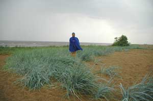 16 Juillet 2005 - de Turaida à Kabli (Estonie) 137 Km. Mince alors ! ça a été une longue journée ! Nous sommes partis à 8 H 00 (tôt pour nous), après avoir dit au revoir à Yannis. La route était agréable, tournoyant aimablement de haut en bas. Nous avons traversé la ville principale de Limbazi et avons trouvé un joli lac pour déjeuner et y nager un peu. En ce lieu nous avions parcouru 80 Km. Pour la première fois dans les pays baltes, le vent était avec nous. Dans l'après-midi, nous avons suivi la belle vallée de la rivière Salaca, avant de rejoindre la Via Baltica sur la côte. Les nuages ont commencés à monter sérieusement. Nous avons brièvement rencontré un cyclotouriste français, Nicolas, avant que le ciel nous tombe sur la tête et que nous nous réfugions sous un abribus. Nous ne pouvions pas croire qu'après des semaines d'un temps souvent trop chaud, la pluie ait choisi le jour même ou nous atteignons finalement la mer baltique ! Nous avons eu un arrêt long et humide à Ainazi, avant le franchissement de la frontière et en bravant la pluie à nouveau. |