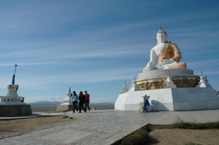 Mais tout n'est pas vraiment mauvais. Nous avons été amusés par « les cabines de téléphone vivant » dans les rues de la capitale. Certains portent un téléphone normal de maison et beaucoup de gens s'arrêtent et appellent en payant 100T par minute, comme vous le feriez d'une cabine de téléphone. Beaucoup de personnes plus âgées portent toujours le "dell' (robe traditionnelle) et elles ajoutent un peu de couleur dans la foules. Nous avons eu la chance d'entendre le bruit mystérieux de la de steppe autrement appelé gorges chantantes dans un spectacle subtilement nommé « Le meilleur de l'art mongol pour les touristes ». Trois gars sont venus sur la scène et ont produit des bruits venant de nulle part. Nous n'avons jamais entendu quelque chose de si étrange. Ils ont utilisé leur estomac et leur gorge pour chanter des mélodies harmonieuses, mais c'était un peu comme écouter E.T. Extrêmement étrange. Et en dépit d'un jour ou nous nous sommes sentis très malades et abattus (nourriture malsaine), nous sommes parvenus à voir les squelettes impressionnants de dinosaures dans le musée d'histoire naturelle et la statue Bouddha de 26.5 m de hauteur énorme dans le monastère de Gandan. Le Bouddha est fait de 20 tonnes de cuivre, est couvert d'or et de pierres précieuses il contient 27 tonnes d'herbes médicinales et à la base une yourte entière (maison traditionnelle) + des meubles !