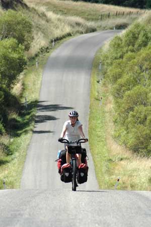 Nous sommes arrivés à Auckland au début du mois de janvier et avons rencontrés de grands ciels bleus et des nuages pelucheux blancs. Parfois les nuages se sont épaissis jusqu'à donner une peu de pluie. La température pour les deux premières semaines était en moyenne de 20° C, avec un peu d'humidité (comparé à la Chine centrale). Pendant la plupart des jours un vent vif soufflait raisonnablement mais avec nos tours et détours, sur l'itinéraire autour de la péninsule de Coromandel et vers Rotarua ceci n'a pas présenté un grand problème. Quand nous avons traversé le secteur de forêt vers le lac Waikaremoana nous avons eu trois journées de pluie constante . Un jour était humide et à 23 degrés, le jour suivant étaient également humides et à 11 degrés C - il est difficile de prévoir quel temps il fera quand on se réveillera. Rappelez-vous juste que le climat est classé maritime - ce qui veut dire que l'on peut voir les quatre saisons en une journée. Le vent peut être un réel problème ici. Pendant notre premier mois, un vent vif raisonnable soufflait mais avec nos tours et détours sur l'itinéraire autour de la péninsule de Coromandel et vers Rotarua ceci n'a pas présenté un grand problème. Dans l'île du sud cependant, le vent a rendu certaines journées de vélo, faciles, très très difficiles, ou extrêmement faciles (nous avons atteint 35 Km/h dans une montée !), mais c'est évidemment rare. Le vent peut également être dangereux et nous faire faire un écart sur le milieu de la route ou nous envoyer dans le fossé. Nous avons dû abandonner d'atteindre le Mont Cook en vélo un tel jour.